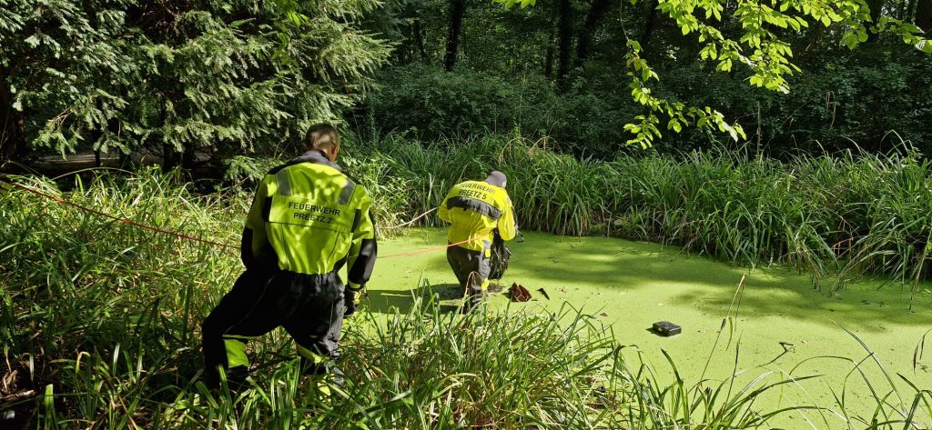 Diebesgut aus einem Teich geborgen.
