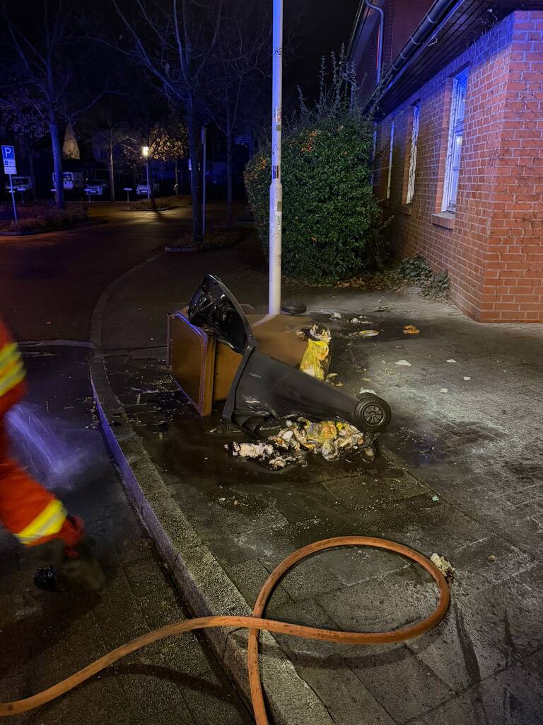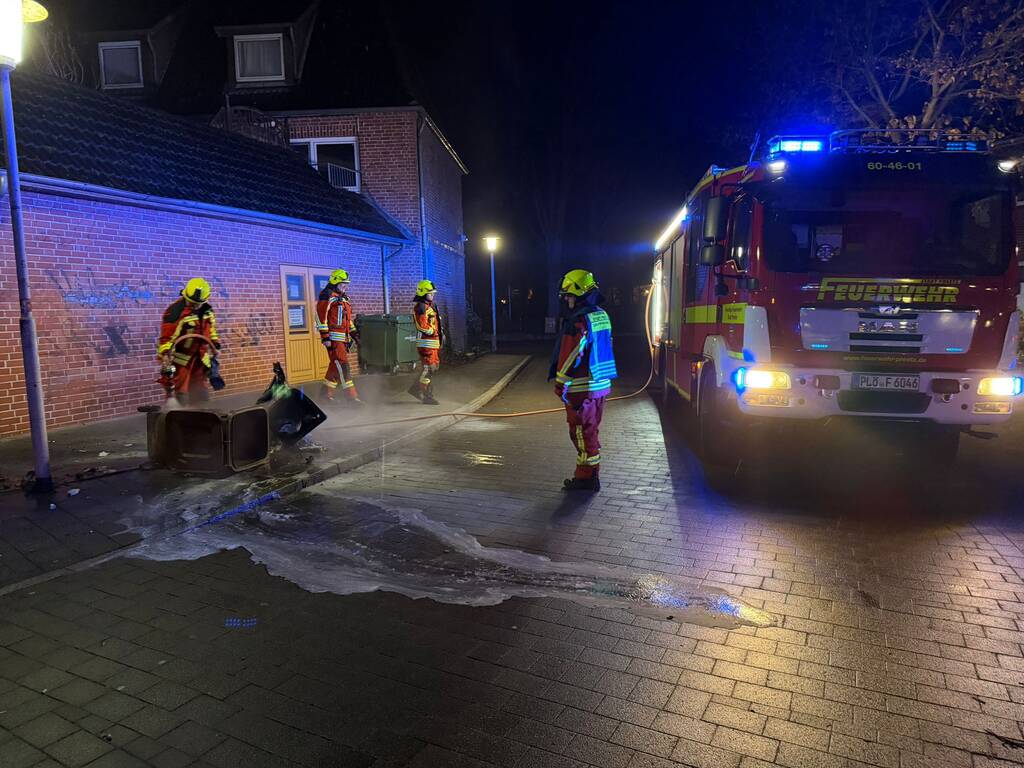Im Bereich Schulstraße sind zwei Mülltonen in Brand geraten. Mit Hilfe einer Schnellangriffseinrichtung* wurden die beiden Tonnen in kurzer Zeit abgelöscht.