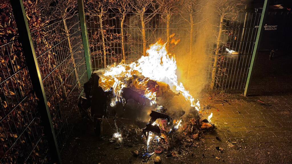 Es waren mehrere Mülltonnen auf einem Sammelplatz in Brand geraten. Mit Hilfe einer Schnellangriffseinrichtung* wurden die Tonnen in kurzer Zeit abgelöscht.