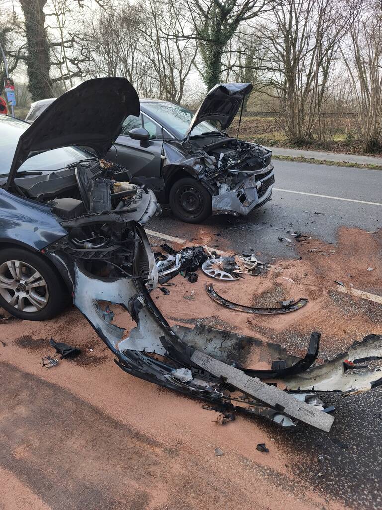 Die Freiwillige Feuerwehr streute die auslaufenden Betriebsstoffe mit Bindemittel ab und klemmte bei beiden PKW vorsorglich die Batterie ab.