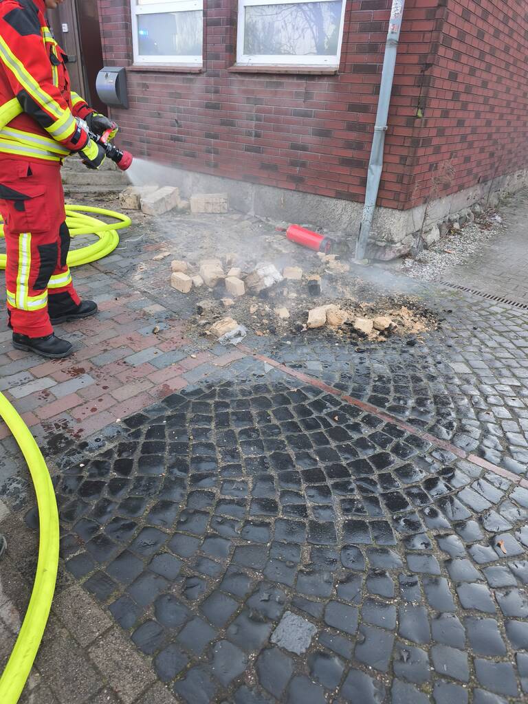 In einer Wohnung waren Holzbriketts in Brand geraten. Diese wurden von einem Trupp unter schwerem Atemschutz grob abgelöscht und ins Freie gebracht. Dort löschte ein zweiter Trupp die verbliebenen Glutnester vollständig ab. Anschließend wurde das Gebäude mithilfe eines Überdrucklüfters vom Rauch befreit.