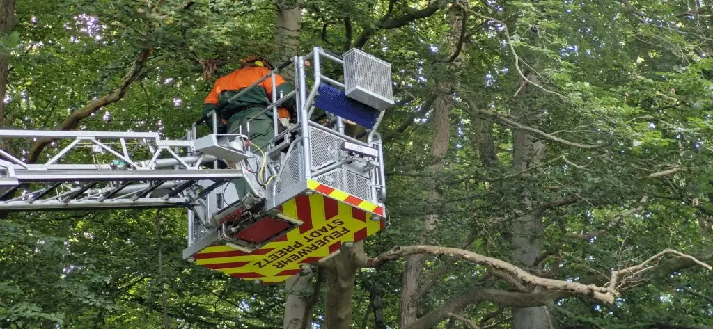 Es drohte ein Ast auf den Wanderweg zu fallen. Der Ast wurde durch die Feuerwehr abgesägt und beseitigt.